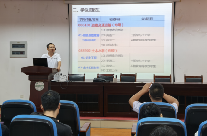 经验交流会开始后,王元元教授介绍了williamhill威廉希尔现有的道路交通运输及土木水利两个硕士点,对专业特点、招生要求、初复试科目、生源计划及调剂原则进行了详细讲解;周兴涛副教授就公司现有的导师团队、科研平台、项目经费和试验设备为同学们进行了讲授,并呼吁大家第一志愿踊跃报考本校硕士点;薛金顺副教授辅导同学们规划了余下三个月的复习安排,着重强调了备考心态特别是上考场后应合理规避的“雷区”,鼓励大家坚定信心、直视挑战、披荆斩棘、成功“上岸”;周飞副教授为同学们罗列了公司教师现有的院校资源,择优选取对考研复试更为有利的高校,并耐心解答了在场考生提出的相关疑惑;刘雨荷老师叮嘱大家留意考研相关讯息,既要低头努力驾车,亦需抬头谦虚问路,切勿因为过度“闭关”复习错过了报名缴费的重要时间截点。
