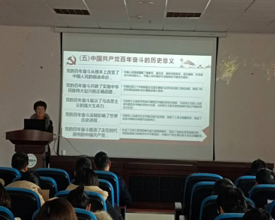 辅导报告以《十九届六中全会重大意义》为主题,紧紧围绕“《中共中央关于党的百年奋斗重大成就和历史经验的决议》是新时代中国共产党人的政治宣言和行动指南”、“深入学习领会《中共中央关于党的百年奋斗重大成就和历史经验的决议》提出的新思想、新观点、新要求”、“学习贯彻《中共中央关于党的百年奋斗重大成就和历史经验的决议》精神”三个方面详细展开。周教授用通俗的语言、严谨的逻辑,图文并茂的讲述了党带领人员经过百年奋斗取得的重大成就、总结了中国共产党百年奋斗的历史经验及新时代十三个方面的历史成就、深刻论述了《决议》的逻辑及其思想精髓。