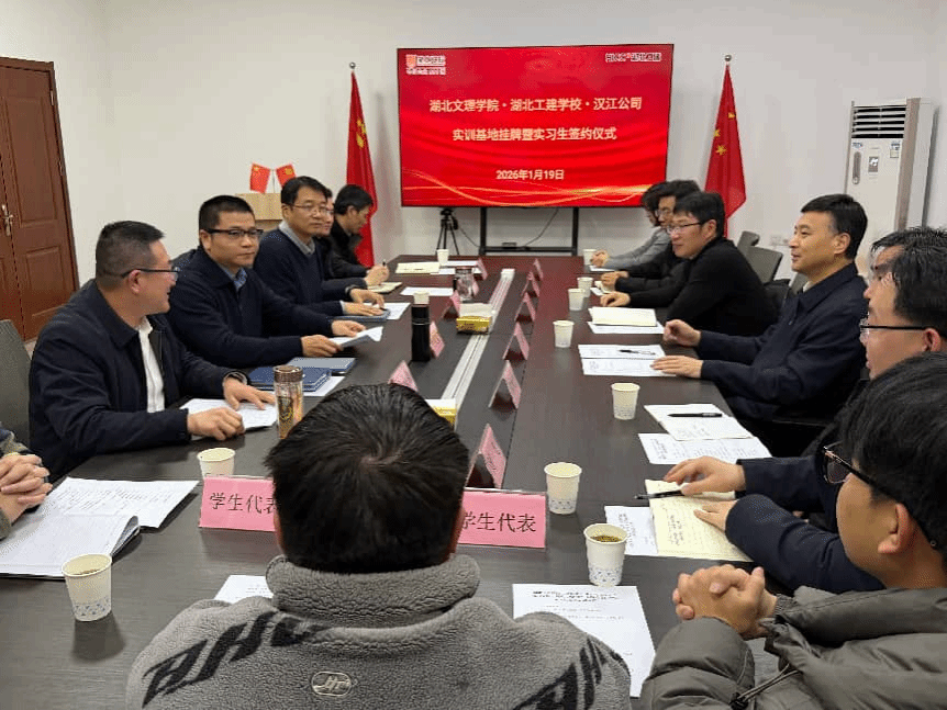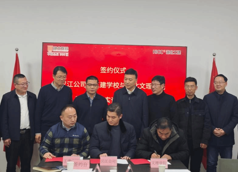 湖北工建汉江工程有限公司党支部书记、董事长王保强,湖北省工业建筑公司党委副书记陈广超,威廉希尔本科生院副经理邓坤臣代表三方签署《共建实习实训基地合作协议书》。杜国峰与袁观富共同为“威廉希尔实训基地”揭牌。