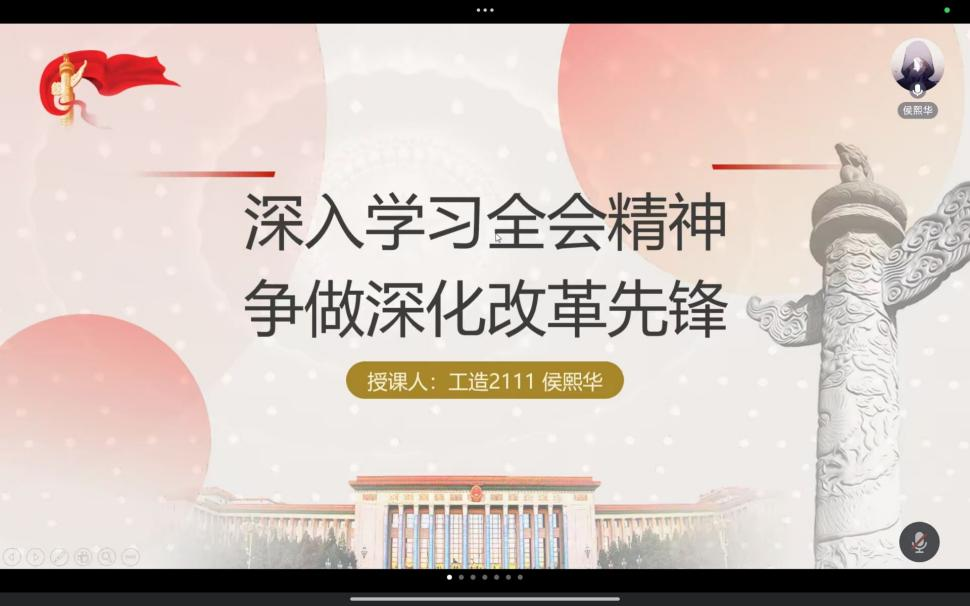工管系员工党支部侯熙华同志为大家讲党课,用青年视角和青年语言,从明确目标、把握目标任务和以目标为导向逐步取得建设新成果三个方面展开。他说:“党的二十届三中全会是在以中国式现代化全面推进强国建设、民族复兴伟业的关键时期召开的一次十分重要的会议。作为新时代青年,我们要以全会精神为指引,深刻把握进一步全面深化改革的总目标,进一步增强推进改革的责任感使命感紧迫感,全力以赴、久久为功,以实际行动践行‘请党放心,强国有我’的铮铮誓言。”