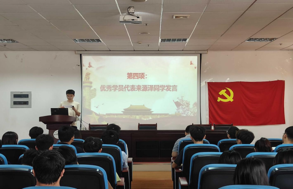 弋兵书记做结业典礼讲话,他对大家顺利完成党课考试表示祝贺,希望同学们能将所学知识应用到今后的学习、生活和工作中,用理论指导实践,在实践中升华认识,不断开拓创新,积极进取。