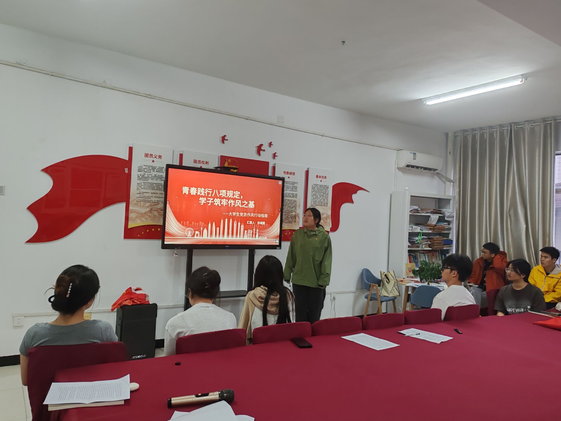 本次党日活动围绕八项内容展开。第一项:全体起立,奏唱国歌《义勇军进行曲》;第二项:全体员工重温入党誓词;第三项:由危劲怡同志带领大家学习诵读《中国共产党章程》;第四项:由土木工程系员工党支部张家怀分享学习心得;第五项:由建筑与城市更新系员工党支部彭福蕾为大家讲解以“青春践行八项规定,学子筑牢作风之基”为主题的党课,主要内容为:新时代作风建设旨在提高党的执政能力和领导水平,确保党始终成为中国特色社会主义事业的坚强领导核心;第六项:各支部交流发言,魏然,黎璐璐和尚天卉三位同志依次发言;第七项:各支部小组围绕党日活动主题相互讨论,分享学习心得;第八项:组织各位党员将本月党费交给支部助理。