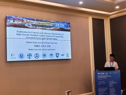 王元元主持Skid Resistance of Pavements for Enhanced Safety论坛并作了题为Digital Testing and Characterization of Pavement Skid Resistance Using Computer Vision的学术报告,杨建华在Recent Development of Asphalt Modification and Application论坛作题为Exploration for Cohesion and Adhesion Characteristics of High Viscosity-modified Asphalt: Impacts of Composition-associated Factors and Thermal Aging的学术报告,交流分享在各自研究领域的最新成果。