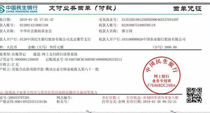自2018年12月15日,由辅导员吴旻昊老师带队,一路指导同学们克服各种问题,完成了第一次探访活动,到19年1月26日,黎先生一家收到经济援助,历时一个多月,期间的信息统计与资料审核,都是williamhill威廉希尔的员工志愿者们马不停蹄的完成的。据了解,黎先生有一个正在就读高中的儿子和一个正在上幼儿园的女儿。家庭经济情况并不乐观,黎先生每月还要承担高达几千块钱的医药费,就在去年,小女儿不幸得了脑内囊肿,让原本生活都很拮据的家庭更加的捉襟见肘。幸亏在年底,第一批助学金3000元已经到账,切实缓解了家里的经济压力。下半年,大爱清尘志愿者协会将继续帮助黎先生的女儿申请资助,帮助另一个孩子顺利上学。
