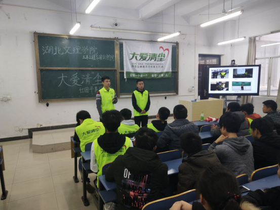 (18级辅导员吴旻昊为大家讲解社团创建意义 大爱清尘协会摄)