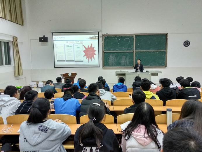 (张樊处长在给同学们做报告 盛磊摄)