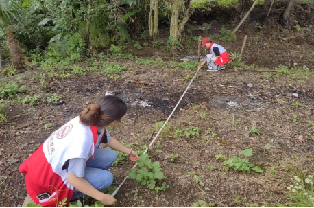 图为实践团队正为打造方家坪村“IP”进行实地测量。