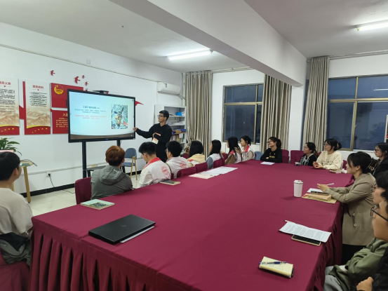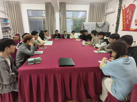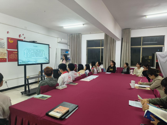 活动共三个环节。第一个环节,刘雨荷老师与同学们共同研读《毛泽东选集》(第一卷)中《湖南农民运动考察报告》《实践论》和《矛盾论》,在阅读中深刻理解将马克思主义的基本观点与中国革命经验的实践相结合蕴含的中国智慧,结合实际领悟习近平新时代中国特色社会主义思想的实践品格与辩证思维。第二个环节,姜东方、聂琴、卢芙蓉、邹远帆同学分别分享了《追风筝的人》《我与地坛》《生死疲劳》《天堂旅行团》,鼓励大家突破苦难,与自己和解,为自己而活,去拥抱自己的未来;揭豪和李杏同学分享《活着》和《家》,揭露书中时代的压迫,呼吁要勇敢坚韧;陈凯泽、周洞明同学分享《月亮与六便士》《被讨厌的勇气》鼓励大家勇于追逐梦想和幸福;陈欣然和李宇辉同学分享了阅读《毛泽东选集》《枕上诗书》的感悟。第三个环节,同学们互相交换书籍。
