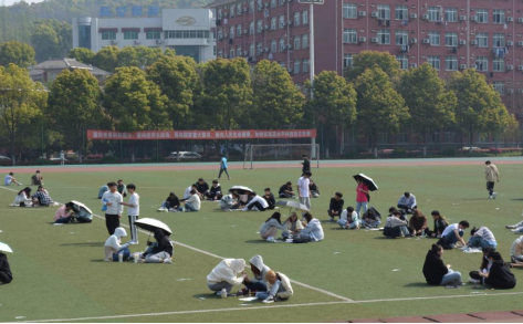 图为同学们在操场进行模型的制作