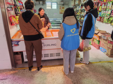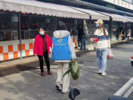 志愿者在与商贩交谈