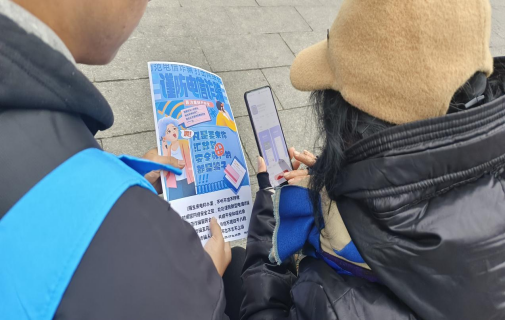 图为志愿者帮助路人安装国家反诈APP