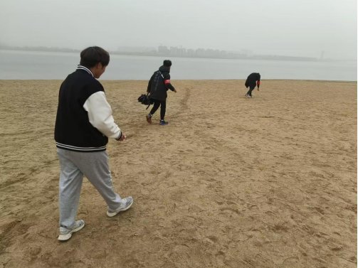 下午1点30分,志愿者们按时到指定地点并集合拍照。随后志愿者们按照预定路线准时出发前往活动地点。下午3时,志愿者们准时抵达了鱼梁洲沙滩。尽管天有微雨,料峭春风吹在志愿者面庞上,但建筑学2111班的志愿者仍一丝不苟地清理着江滩上残留的垃圾。这些绿色志愿者希望借由活动能够在美化城市的过程中宣扬绿色的生活方式,在劳动中树立环保的理念,在实践中充分展示青年志愿者的责任、担当和情怀,让雷锋精神传播更广。