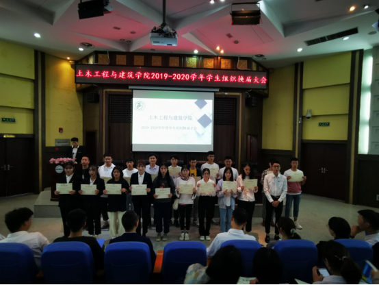 会上,弋兵为上一届团委·员工会、19级助理班主任、党支部委员以及社团会长颁发聘书,以资鼓励。弋兵肯定了上一届团委·员工会·分社联及党支部的工作,并宣读了2019-2020学年度优秀组织、优秀干部及干事成员名单。随后,辅导员刘潇老师宣读第十三届员工党支部委员及团委·员工会干部任命文件。新一届员工会主席王鑫接过上届主席李全能的会旗,表明会在今后的日子里与新一届员工会成员为员工会的建设共同努力。接着弋兵书记与大会成员共同探讨了新一届员工会的工作设想,围绕各部门的交流合作、制度建设、创新管理等方面,对未来工作进行了深入的剖析,强调员工会成员要增强奉献精神和责任意识,始终保持良好的精神风貌。同时强调要在学习上面做好带头作用。最后,换届大会在热烈的掌声中落下帷幕。