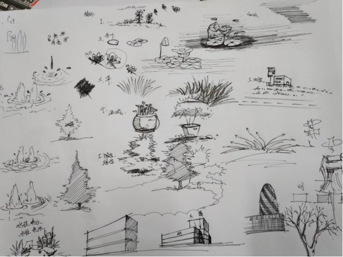 建筑艺术社社长刘福成在手绘课中主要讲解了如何将线条描绘的更加优美,如何画抖线、快线和断线并运用这些线条表达具体景观,传授同学们一些让画面变的更加引人入胜的绘画技巧。在刘福成的细心讲解下,同学们对绘画产生极大的兴趣,纷纷投入到绘画中去,虽然大多数同学没有绘画的基础,但是凭借自己丰富的想象力,并通过积极的尝试,没有过多长时间一幅幅优美的钢笔手绘图呈现在同学们的面前。同学们紧紧地盯着自己努力完成的作品,极具成就感,建筑艺术社各负责人看到他们的作品后脸上流露出欣慰的笑容。