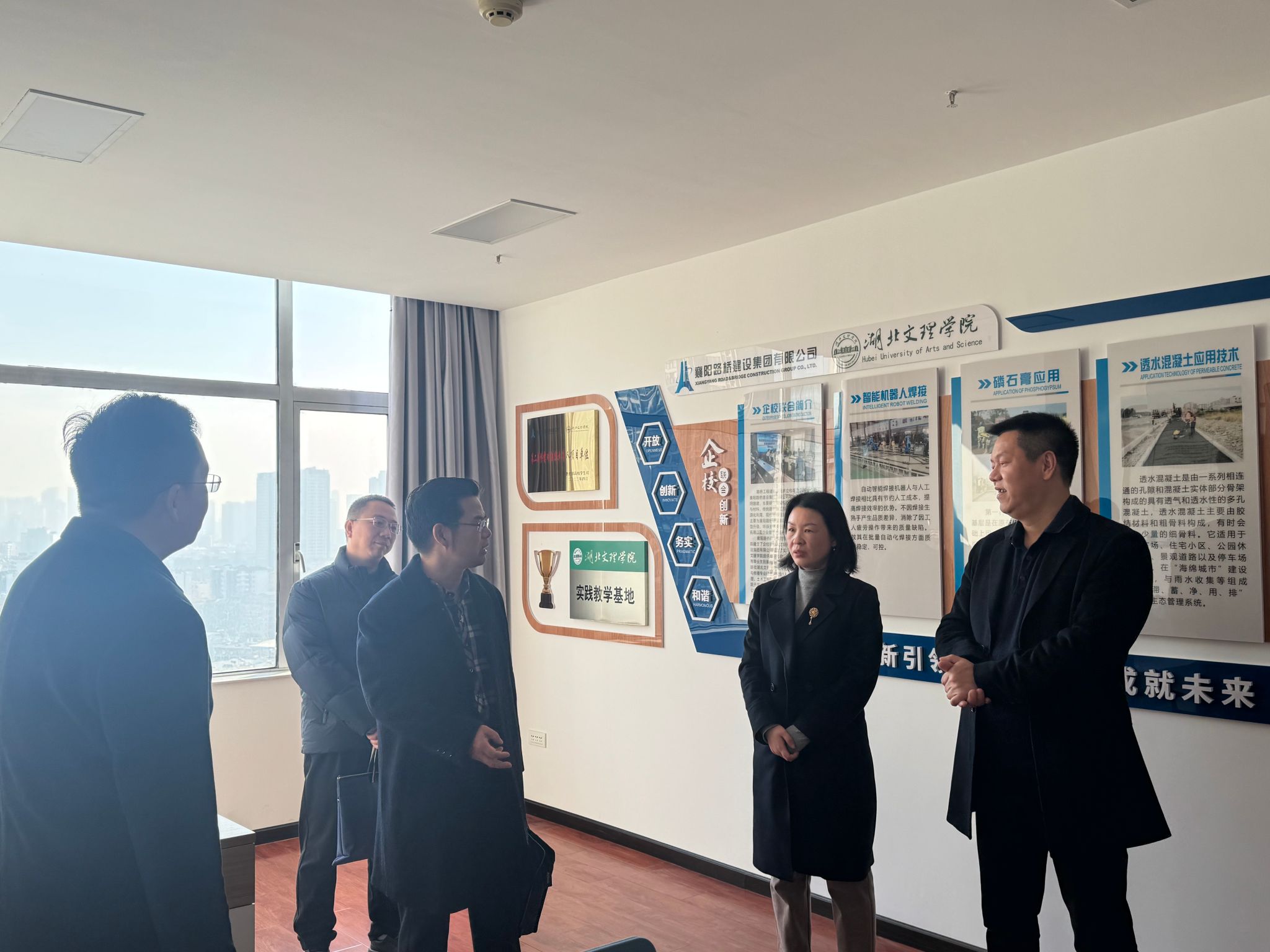 (土建公司 通讯员 刘雨荷)1月8日,土木工程与建筑公司党委书记黄海、党委副书记弋兵、副经理王元元、教学委员会副主任尹晓萌一行前往襄阳路桥建设集团有限公司开展访企拓岗活动。