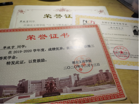 毕欣宇深知所掌握的知识、技能都需要时刻更新和补充,为了提高自身知识素养,她一刻都不敢松懈。课余时间,她尽可能多的阅读心理方面的书籍为以后的考研打基础,她相信“一分耕耘一分收获;成功的路上没有捷径,只有路径,唯有脚踏实地才可到达理想的彼岸。”