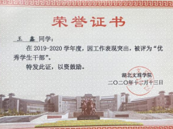 王鑫同学将“天行健,君子以自强不息”作为座右铭。大学四年中,他热爱生活,积极进取,学习谦虚谨慎,刻苦勤奋;能够妥善处理学习和工作两者之间的关系,做到全面发展。志士之气,不宜妄自菲薄;在思想和行动上,他严格要求自己,以此树立正确的世界观、人生观、价值观。