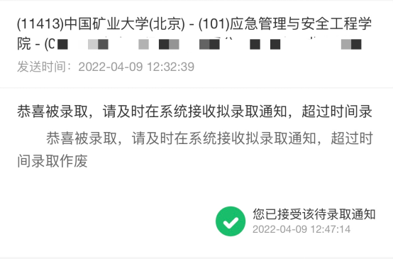 初入大三,郑怡鑫萌生了加入考研大军的想法,从一个对考研一无所知的懵懂状态,在不断地向学长学姐询问过往经验,并结合自身的实际特点后,摸索出了一套独家学习方法。按照自己的学习方法日复一日的坚持,他明显能感受到从质变到量变的过程。特别是在考研冲刺阶段,每天早上六点准时出现在黑漆漆的自习室中,每天晚上也是很晚才回寝室。功夫不负有心人,他顺利通过中国矿业大学研究生初试。在考研的过程中,他也没有放弃寻找工作的机会,凭借复习中对土木专业有了更深入的认识,以及大学四年不断地沉淀积累,最终拿到了中交二航局的录用通知。