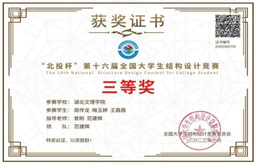学习之余,梅玉婷积极参加各类学科竞赛。获得2023年“北投杯”第十六届全国老员工结构设计大赛国家级三等奖和最佳创意奖、2023年“中治南方杯”第十届全国老员工结构设计大赛省赛一等奖、2022年和2023年连续两年老员工结构设计竞赛校赛一等奖、2023年数字建筑创新应用大赛——BIM数维设计建模竞赛国家级二等奖、学创杯创新创业模拟大赛校赛二等奖等多项学科竞赛奖项。老员工创新创业竞赛获批省级项目《BIM技术在建筑结构检测与评估的应用》、校级项目《“爱暖童心”——留守儿童阳光“助航”计划》。大二至大三期间发表学术论文《BIM 技术在建筑结构检测与评估的应用》和《新型TPO防水卷材施工优化探讨》。