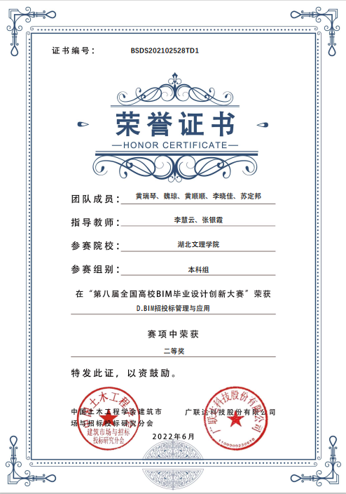 面对各种创业比赛、学科竞赛等,苏定邦积极参与。他主持校级老员工创新创业项目1项,受理发明专利2项,先后发表学术论文4篇,在“第八届全国高校BIM毕业设计创新大赛”BIM招投标管理与应用中获国赛二等奖,在“第七届全国高校BIM毕业设计创新大赛”BIM建设工程管理应用中获国赛二等奖,在“南方测绘杯”第六届全国高等公司老员工测绘技能大赛(虚拟仿真数字测图竞赛)中获国赛二等奖。经历了各类比赛的洗礼后,他深刻感受到自己的综合素质得到了全面提升。